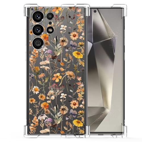 CAROKI Clear Case for Samsung Galaxy S24 Ultra,Shockproof Transparent Bumper Cover Soft Silicone Rubber TPU Bumper Clear Cover Phone Case with Wildflower Pattern for Samsung S24 Ultra-New Wildflower
