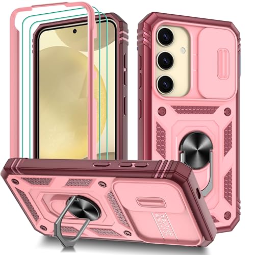 Pilaru 3 in 1 for Samsung S25 Plus Case | With Front Frame | [Separate] 2 Screen Protector & Kickstand Ring & Camera Cover Military Grade Drop Shockproof Protection for Galaxy S25 Plus,Pink/Red