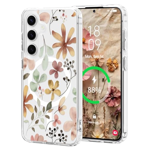 L-FADNUT Magnetic for Samsung Galaxy S25 Plus/S24 Plus Case, Compatible with Magsafe Floral Pattern Design Phone Case, Girly Flower Slim Clear Bumper Shockproof Cover for Girl Women, Multicolor