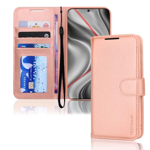 TECHGEAR For Samsung S25 Plus Phone Case, Rose Gold PU Leather Wallet Case with RFID Blocking Card Slots, Stand Function, Wrist Strap, Magnetic Closure, Shockproof Protection for Galaxy S25+ 5G