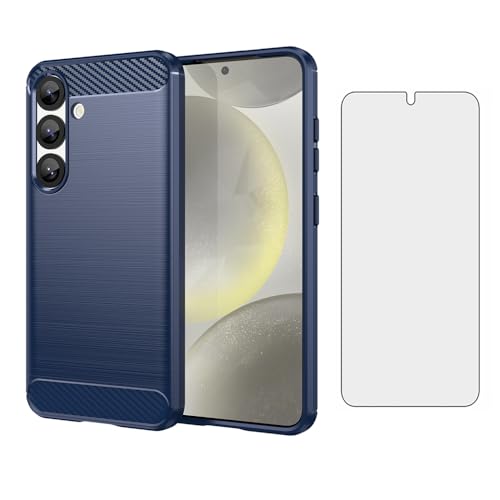 Asuwish Compatible with Samsung Galaxy S25 Plus 5G Phone Case with Tempered Glass Screen Protector Grip Slim Silicone Shockproof Cell Accessories Carbon Fiber S25Plus + S25+ for Women Men Blue