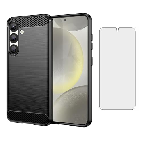 SCL Case for Samsung Galaxy S25 Plus - Anti-Slip Brushed Texture with Carbon Fiber Design, Shockproof Protective Soft TPU Cover for Samsung S25 Plus - Black