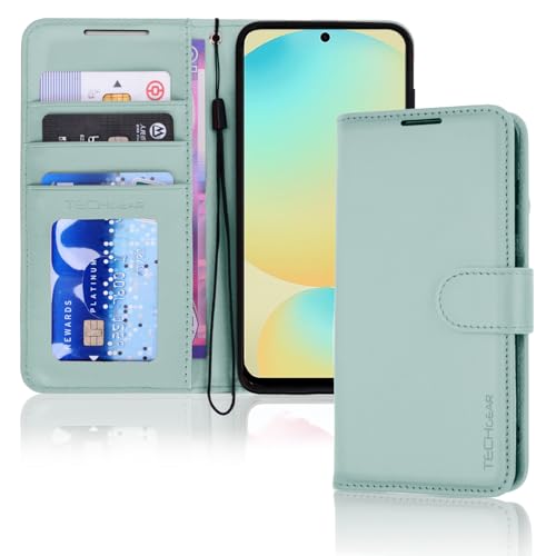 TECHGEAR For Samsung S25 Plus Phone Case, Mint Green PU Leather Wallet Case with RFID Blocking Card Slots, Stand Function, Wrist Strap, Magnetic Closure, Shockproof Protection for Galaxy S25+ 5G