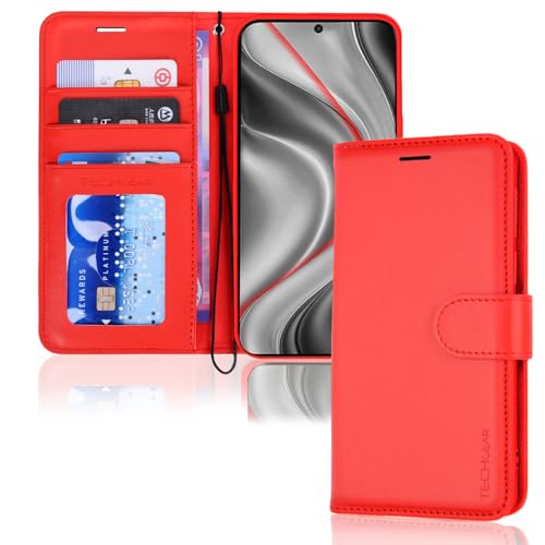 TECHGEAR For Samsung S25 Plus Phone Case, Red PU Leather Wallet Case with RFID Blocking, Card Slots, Stand Function, Wrist Strap, Magnetic Closure, Offering Shockproof Protection for Galaxy S25+ 5G