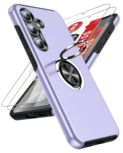 LeYi for Samsung Galaxy S25 Plus Phone Case with 2 Tempered Glass Screen Protector and Invisible Phone Ring Holder, Shockproof Protective Cover for Samsung Galaxy S25 Plus - Purple