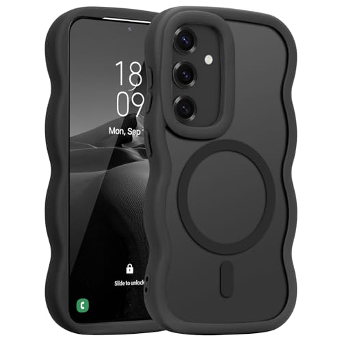 Pepmune Magnetic for Samsung S25 Plus/S24 Plus Case [Compatible with Magsafe] Translucent Matte Cute Curly Wave Frame Phone Case,Soft TPU Bumper Slim Fit Shockproof Cover for Men Women-Black