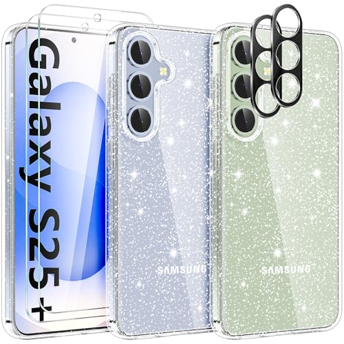 YIRSUR Glitter Clear Case for Samsung Galaxy S25 Plus Case with 2 Pack Screen Protector with 2 Pack Camera Lens Protector, Sparkle Bling Slim Soft TPU Bumper Anti-Scratch Clear Shockproof