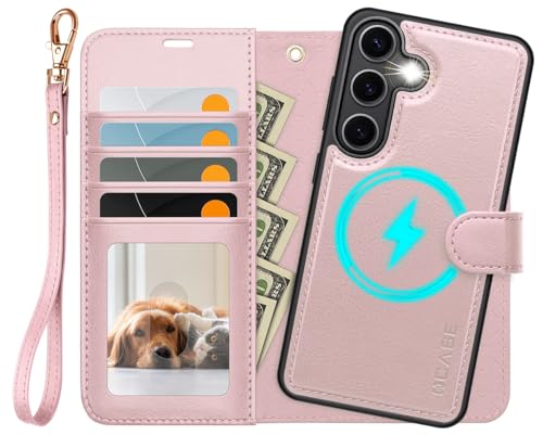 OCASE for Samsung Galaxy S25 Plus Case, Detachable 2 in 1 PU Leather Wallet Case with RFID Blocking, Wireless Charging, Card Holders, Kickstand, Shockproof Removable Phone Cover, Rose