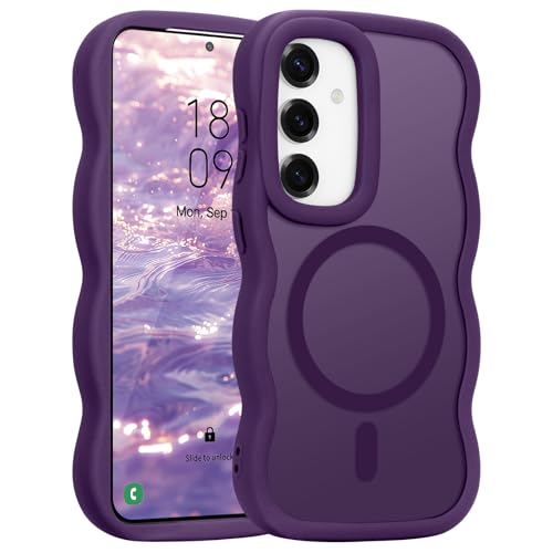 Pepmune Magnetic for Samsung S25 Plus/S24 Plus Case [Compatible with Magsafe] Translucent Matte Cute Curly Wave Frame Phone Case,Soft TPU Bumper Slim Fit Shockproof Cover for Men Women-Dark Purple