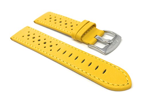 22mm Yellow Smartwatch Band Strap fits Motorola 360 (46mm Case), Samsung S3 Classic & Many More, Leather, Vented Racer