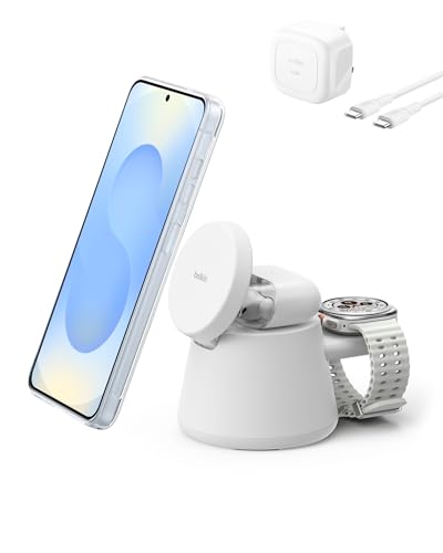 Belkin Ultracharge 3-in-1 Wireless Charging Station w/USB C Port for Smartwatch (watch charger not included), Qi2.2 Magnetic Charger 25W for Samsung S26, Galaxy Watch, Apple Watch, with 45W Adapter