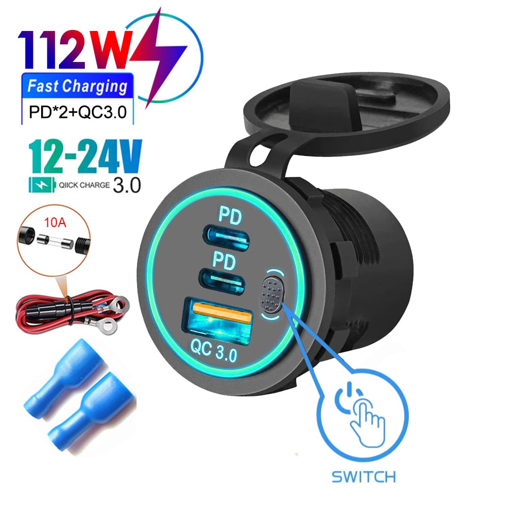 PD QC3.0 Quick Phone Charger Socket Dual USB Ports Waterproof with LED Touch Switch Power Adapter For Huawei IPhone Samsung
