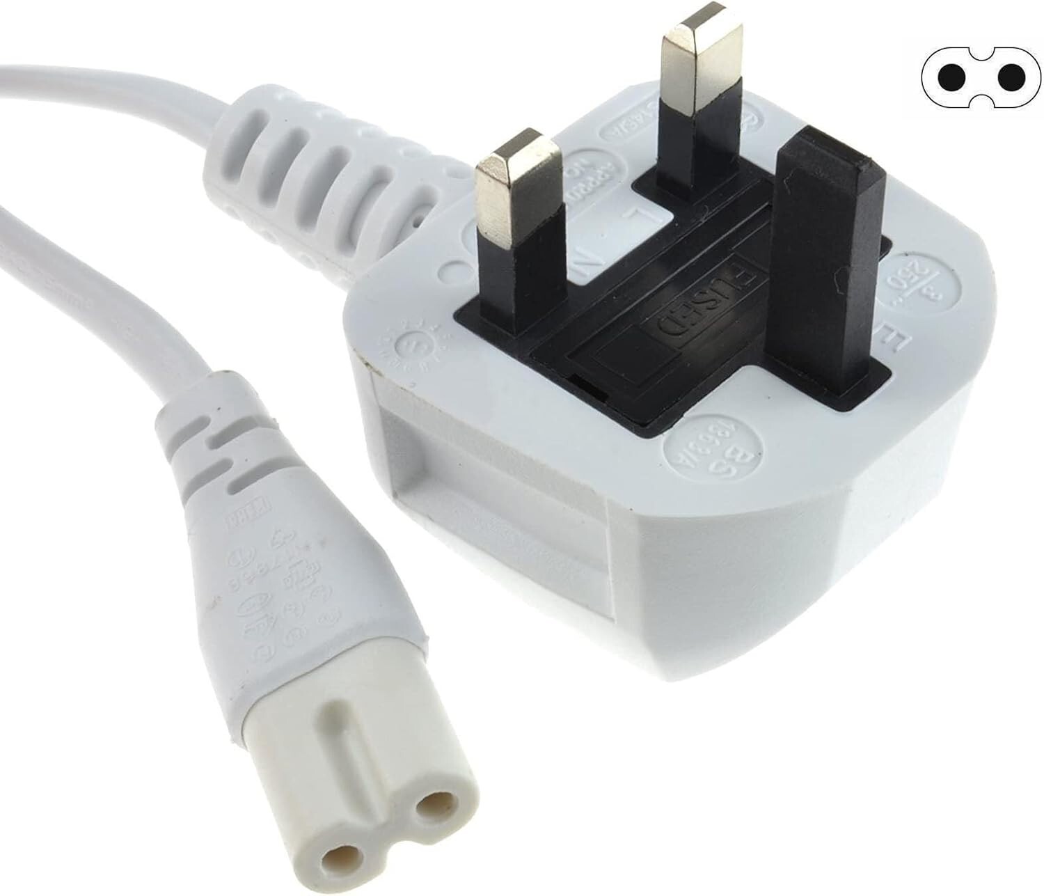 Figure 8 Power Cable UK Plug to C7 Lead for LED TV Samsung/LG Black/White Laptop