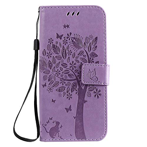 Reevermap Samsung A54 Case Wallet Cover for Samsung Galaxy A54 5G Flip Shockproof PU Leather Bumper with Embossed Tree Magnetic Clasp Kickstand Card Holder, Light Purple