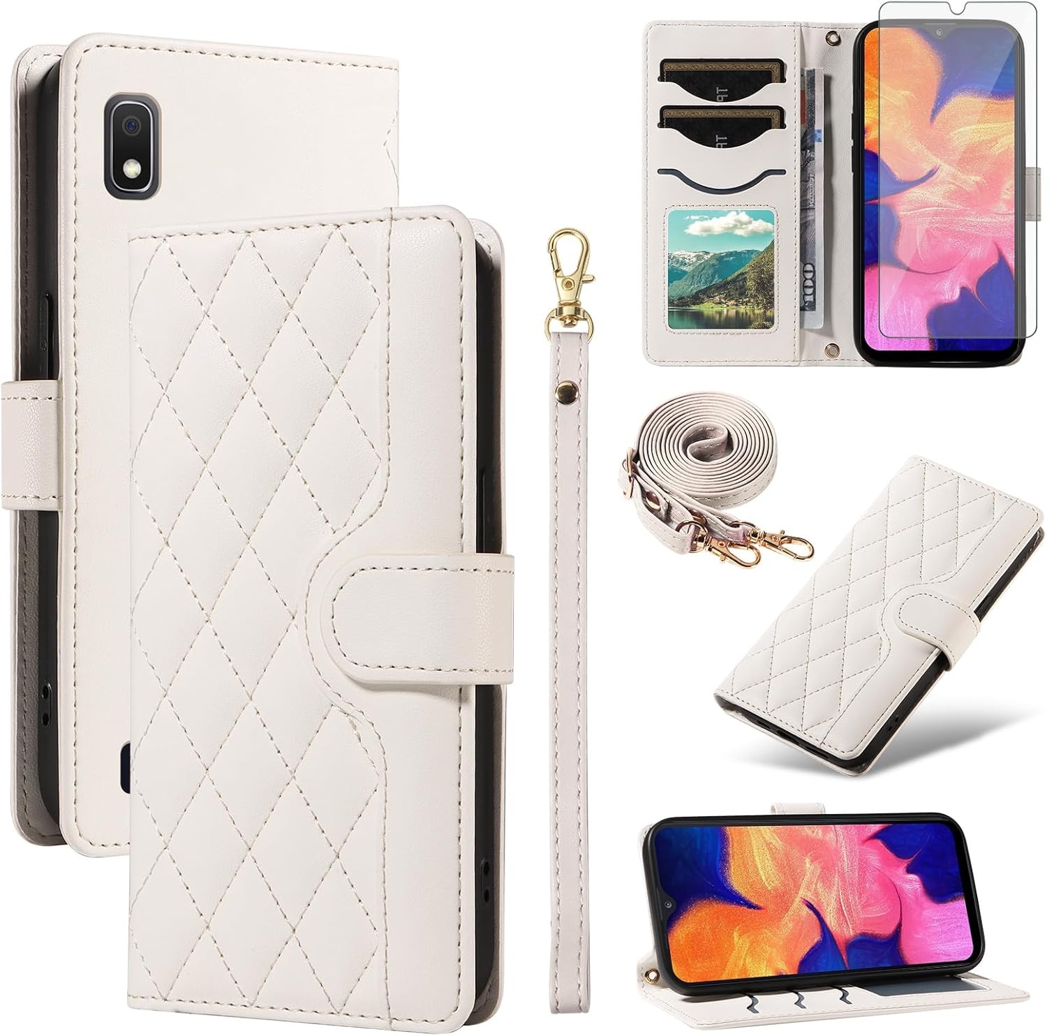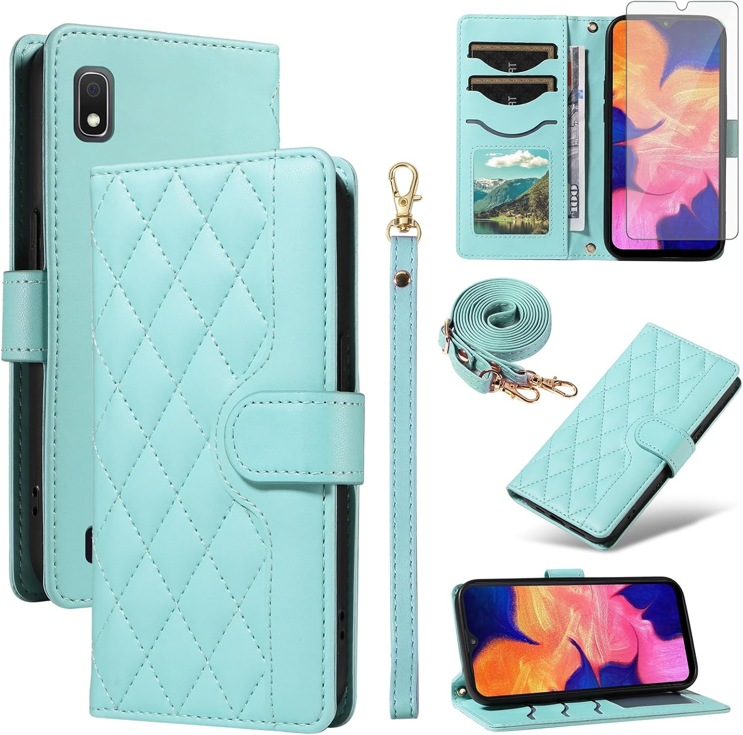 Asuwish Phone Case for Samsung Galaxy A10 Wallet Cover with Tempered Glass Scre