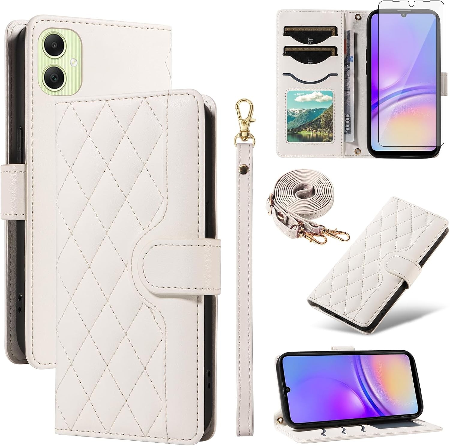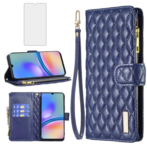 Asuwish Phone Case for Samsung Galaxy A05 Wallet Cover with Tempered Glass Scre