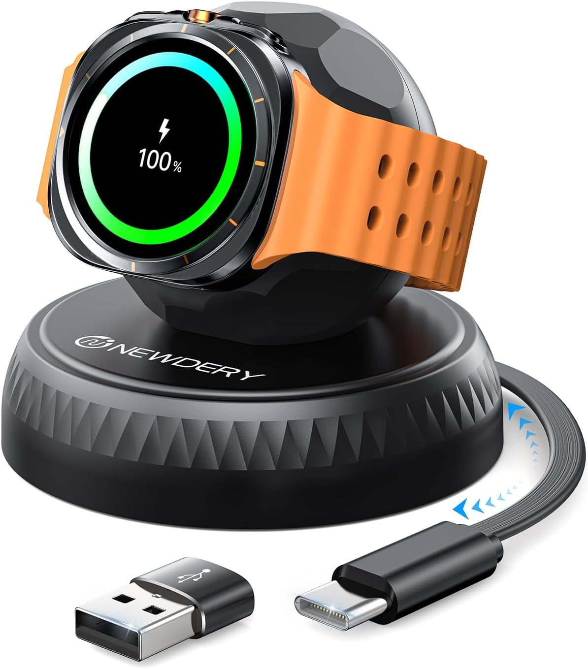 NEWDERY for Samsung Watch 7 Charger with Retractable USB C Cable, Portable Magn