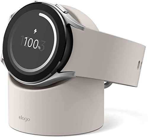 elago Charger Stand Compatible with Samsung Galaxy Watch Series 4, 4 Classic, 3, Active 2, 1 [40 41 44 45 46mm] Nightstand Mode, Cable Management [Cable Not Included] (Stone)