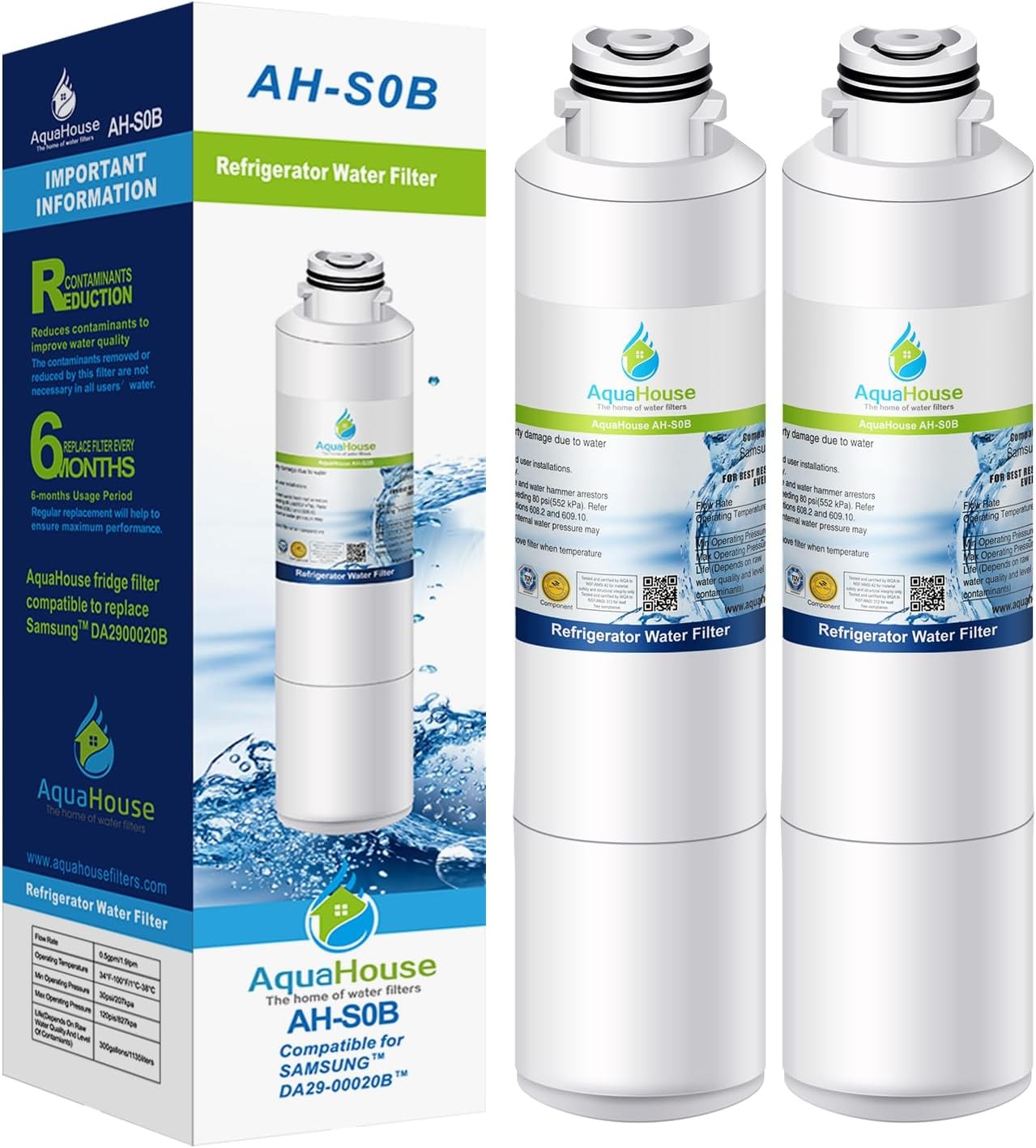 2X AH-S0B Compatible for Samsung DA29-00020B Water Filter, HAF-CIN/EXP, DA97-08