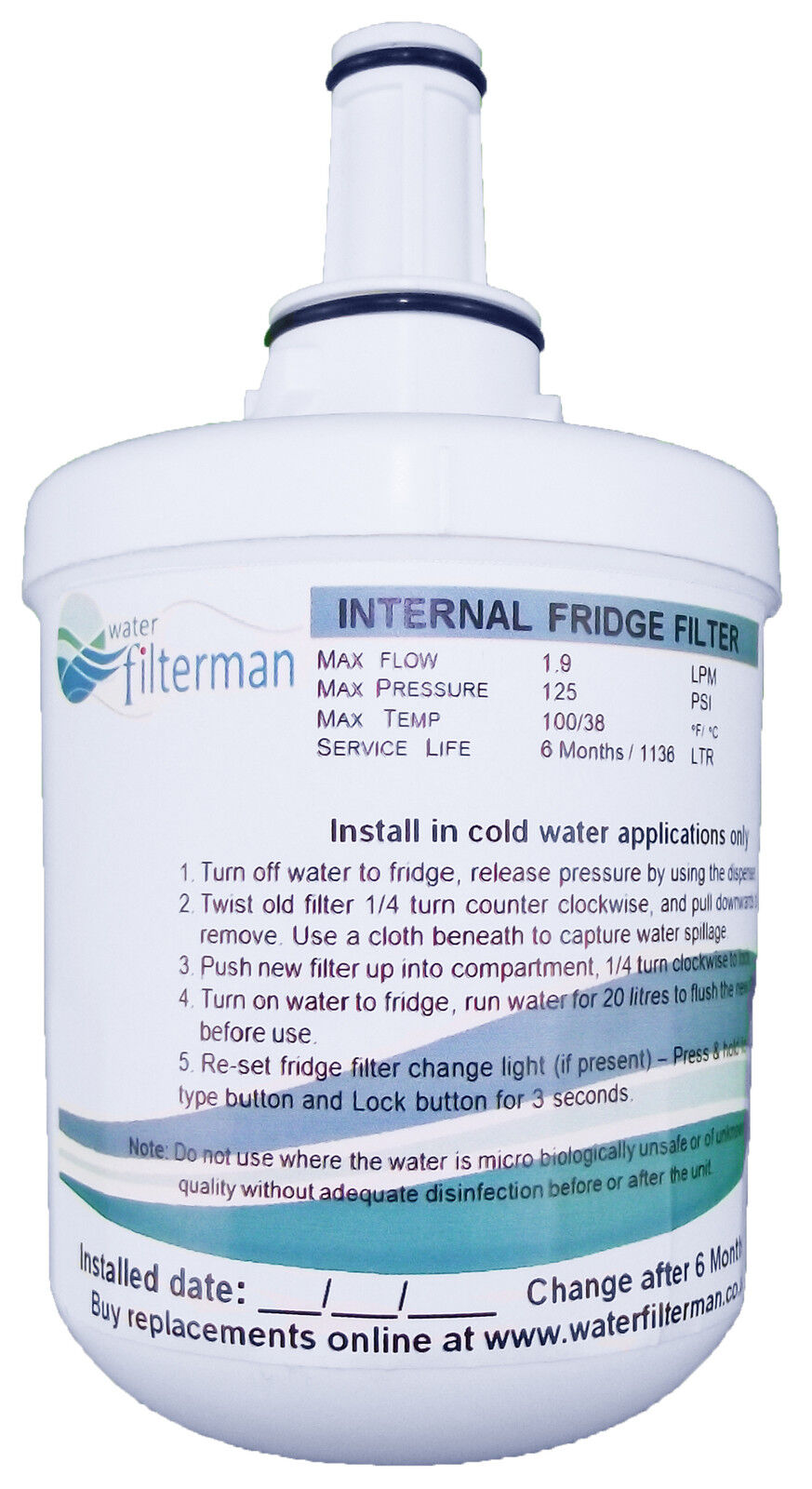 Samsung Genuine External ' Push Fit ' Inline Fridge Water Filter for RSH7UNBP American Style Side By Side Fridge Freezer