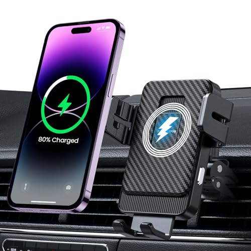 ISEYOU Car Phone Holder Wireless Charger, 15W Fast Charging Auto Clamping Wireless Car Charge, 360° Rotation Air Vent Mount With Electric Sensor Compatible For iPhone 16 15 14 Pro Max, Samsung Galaxy