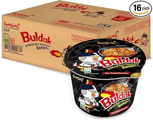 Samyang Buldak Spicy Hot Chicken Stir Fried Big Bowl Ramen (105g Pack of 16)
