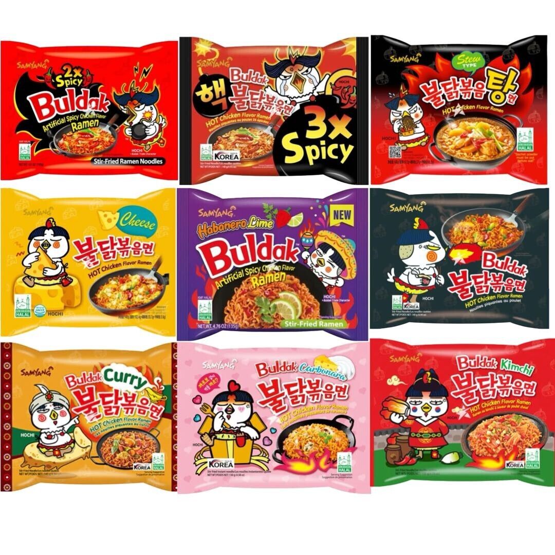 Samyang Buldak Spicy Ramen Korean Noodles Challenge (10 Packs, 7 Flavours) HALAL
