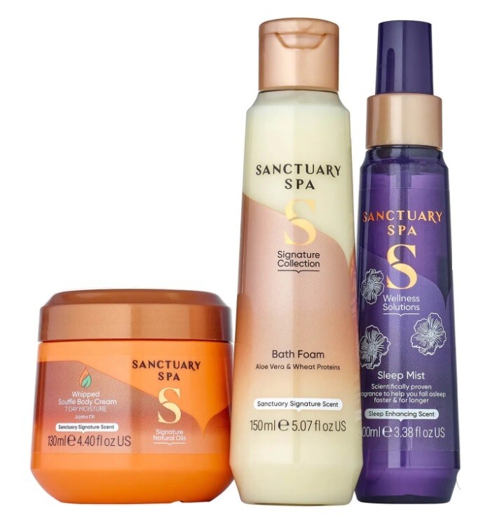 NEW Sanctuary Spa 🧡 Pamper Nights Cream, Sleep Mist, Bath Foam 🧡 HARD CASE BOX