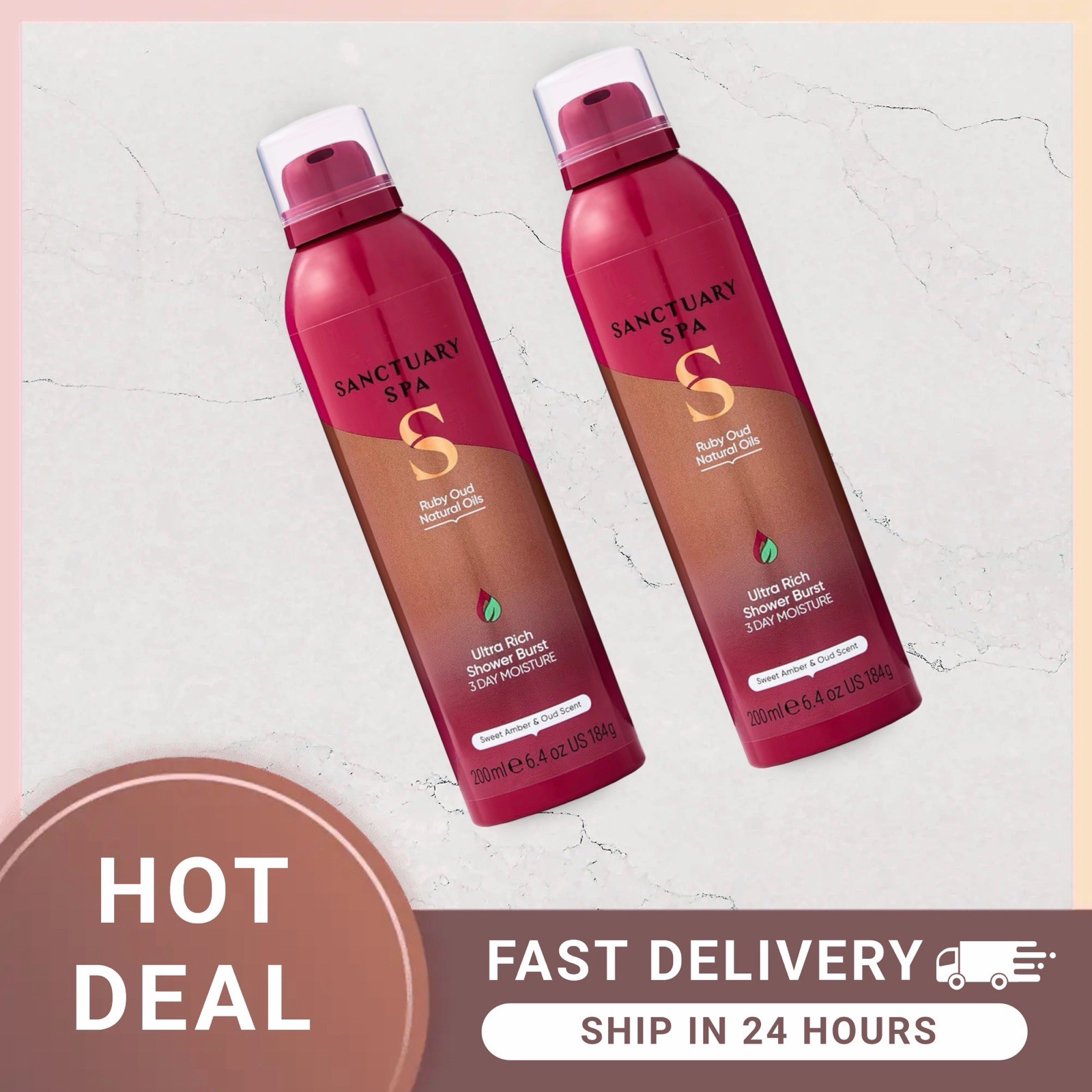 Sanctuary Spa Amber Ruby Oud Shower Burst 200 -2 Pack RRP £18