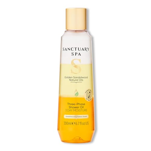Sanctuary Spa Golden Sandalwood Three-Phase Shower Oil, 3 Day Moisture, Mineral Oil Free, Cruelty Free & Vegan, 250ml