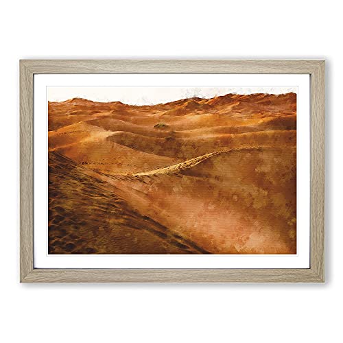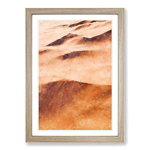 Big Box Art Sand Dune Mountain in Namibia Watercolour Framed Wall Art Picture Print Ready to Hang, Oak A2 (62 x 45 cm)