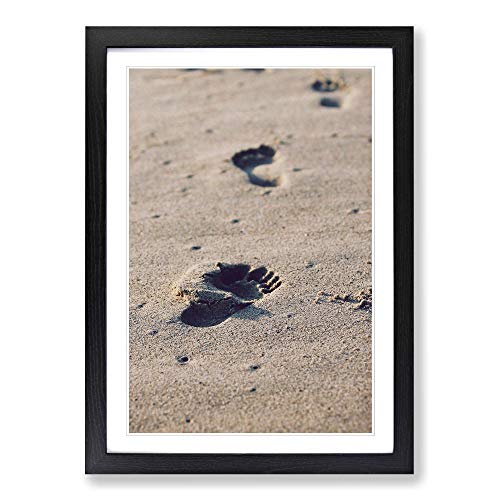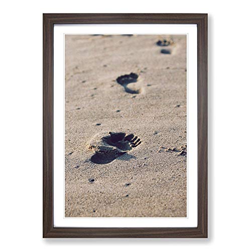 Big Box Art Footprints in The Sand Framed Wall Art Picture Print Ready to Hang, Walnut A2 (62 x 45 cm)