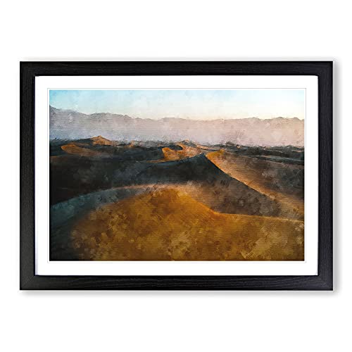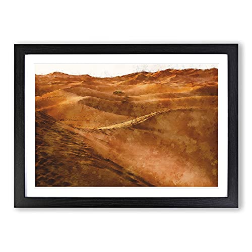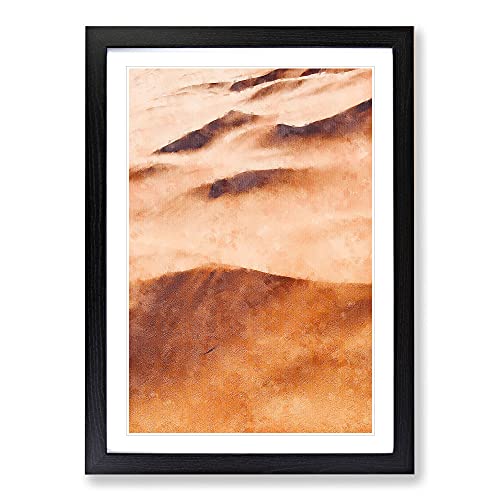 Big Box Art Sand Dune Mountain in Namibia Watercolour Framed Wall Art Picture Print Ready to Hang, Black A2 (62 x 45 cm)