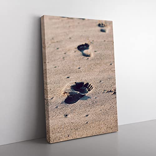 Big Box Art Footprints in The Sand Canvas Wall Art Print Ready to Hang Picture, 30 x 20 Inch (76 x 50 cm), Multi-Coloured