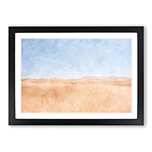 Big Box Art Sand Dunes at Night Watercolour Framed Wall Art Picture Print Ready to Hang, Black A2 (62 x 45 cm)