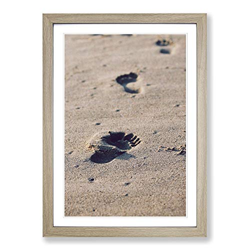 Big Box Art Footprints in The Sand Framed Wall Art Picture Print Ready to Hang, Oak A2 (62 x 45 cm)