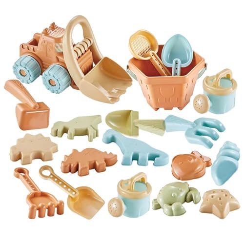 Elyebxj Beach Toys Kid Sand Pit Toys Set with Beach Bucket Dump Truck Toy 19PCS Sand Shovel Rake Animal Mold for Kid Game Toy