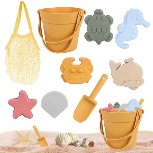Beach Toys Set - 10 PCS Sand Pit Toys For Kids | Bucket And shovel | Summer Outdoor Beach Games With Marine Animal Moulds | For Boys Girls Age 3-8 Backyard Pool Camping