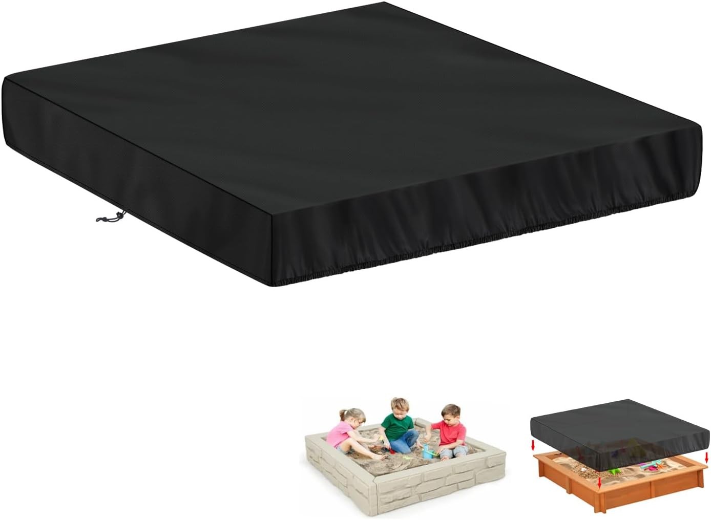OUTTDID Square Sandbox Cover, 420D Garden Waterproof Sand Pit Cover Dustproof Protection Sandpit Pool Cover Black Sand Box Canopy with Drawstring Avoid the Sand and Toys Contamination - 128CM
