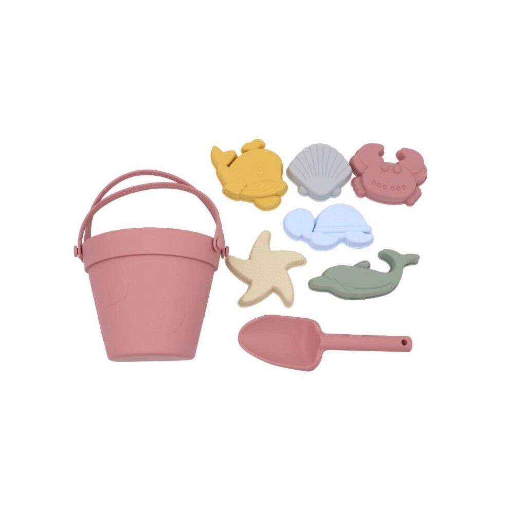 Gukasxi Beach Toys Set for Kids, 8 Pcs Kids Sand Bucket with Bucket, Shovels and Sea Animal Soft Molds, Outdoor Fun Tools Toddler Children Boys Girls, Pit, Pink (Sandspielzeug 8)