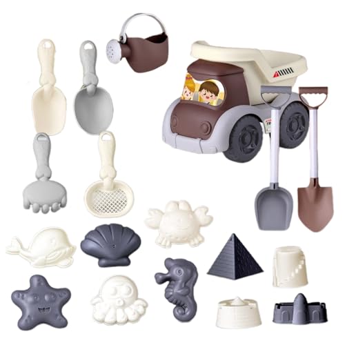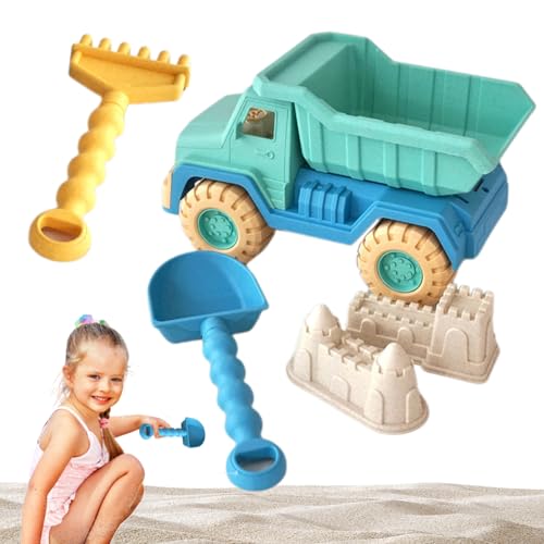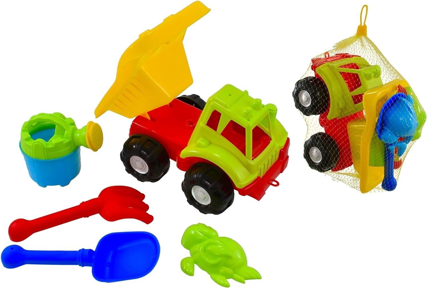 ADEPTNA Beach Truck Set - Spade Dumper Truck, Sand Mould, Watering Can, Sand Bucket, beach shovels - Perfect Beach Toy Set