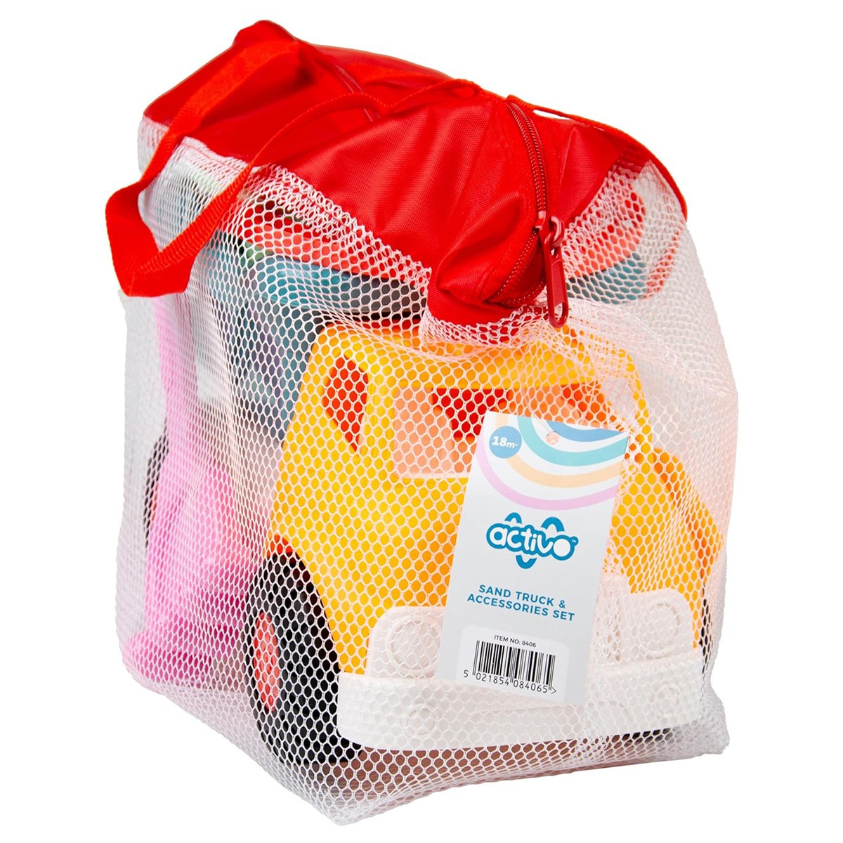 Activo Sand Truck & Accessories Set – 11-Piece Beach Toy Collection with Sea Creature Molds, Pickup Truck, Bucket, Spade, Rake & Water Jug for Creative Outdoor Play, Ideal for Toddlers 18+ Months