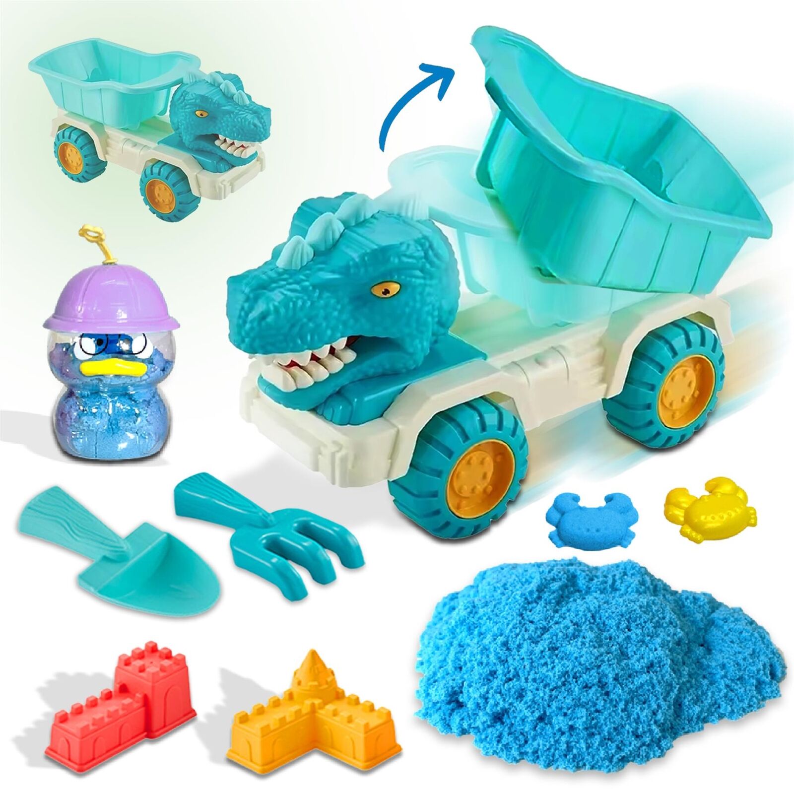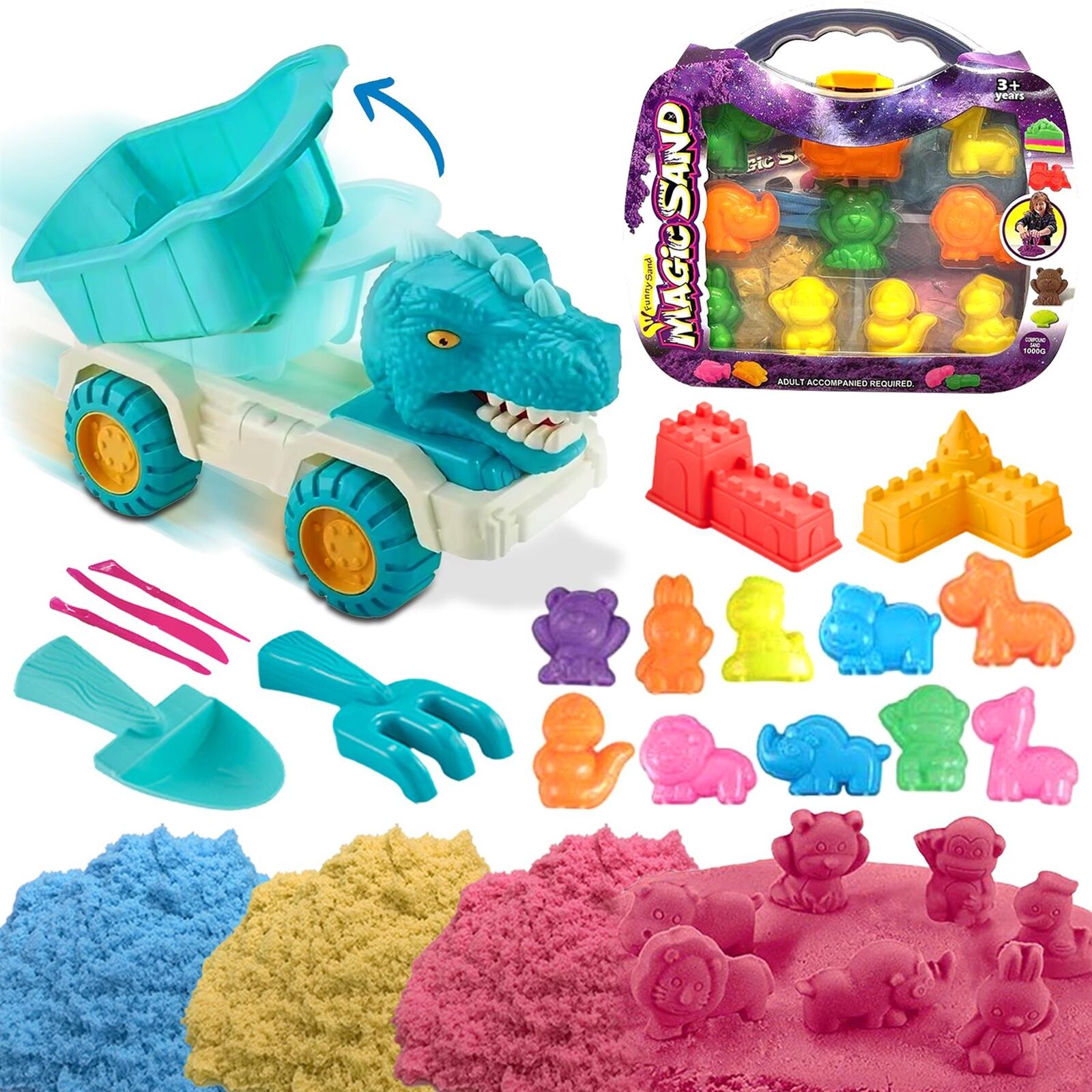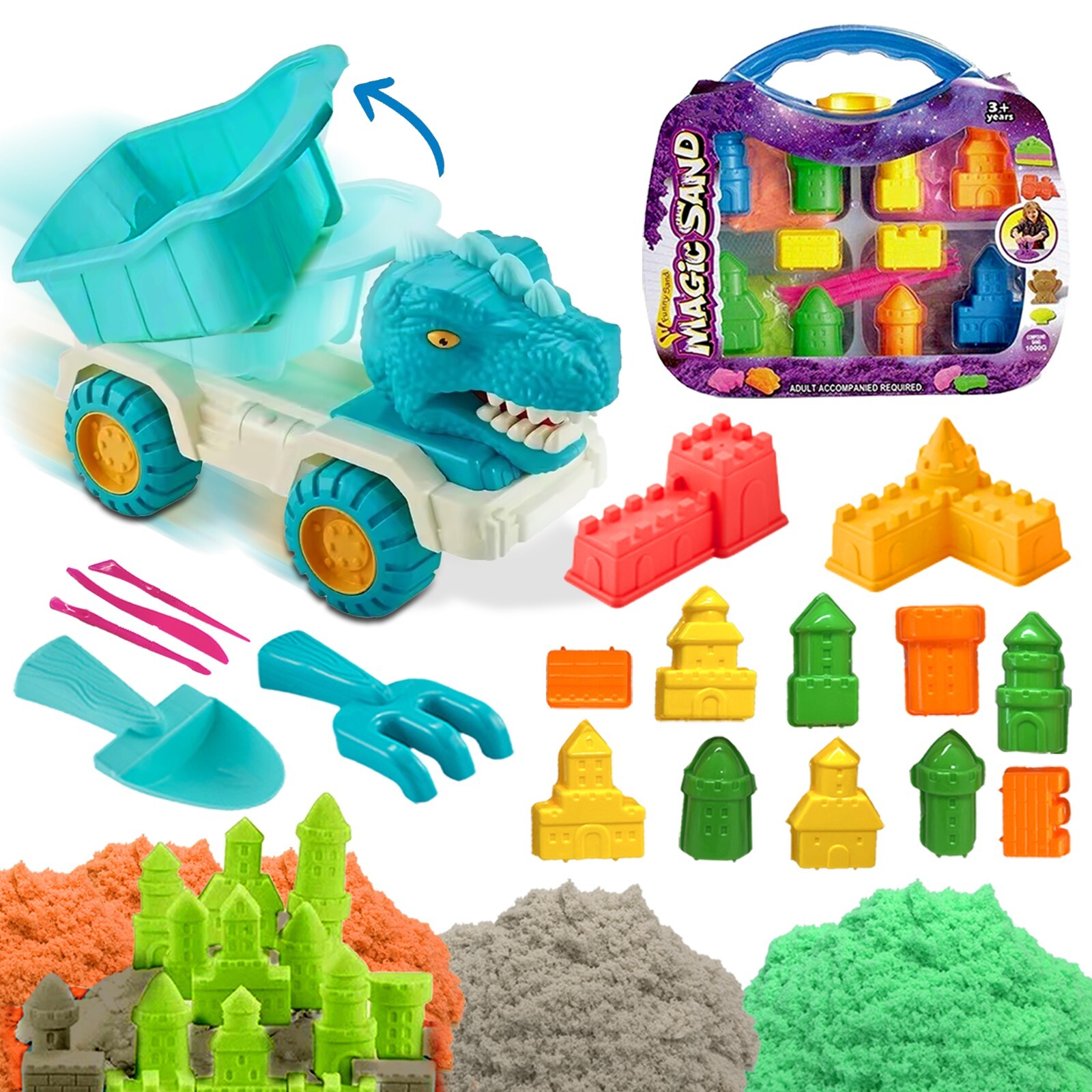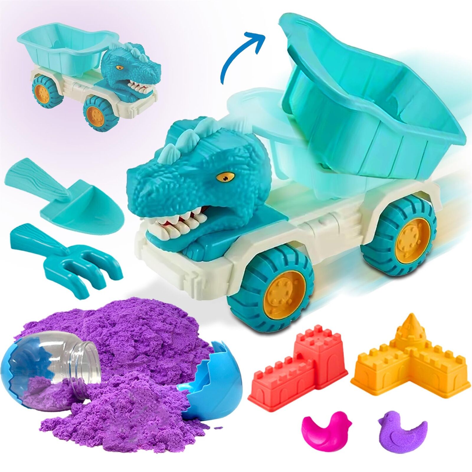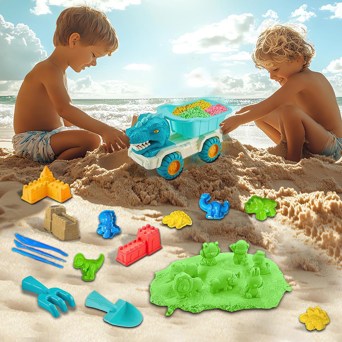 Kids 18PCS Dinosaur-Themed Beach Sand Play Set Truck Tray Molds Tools 750g Sand