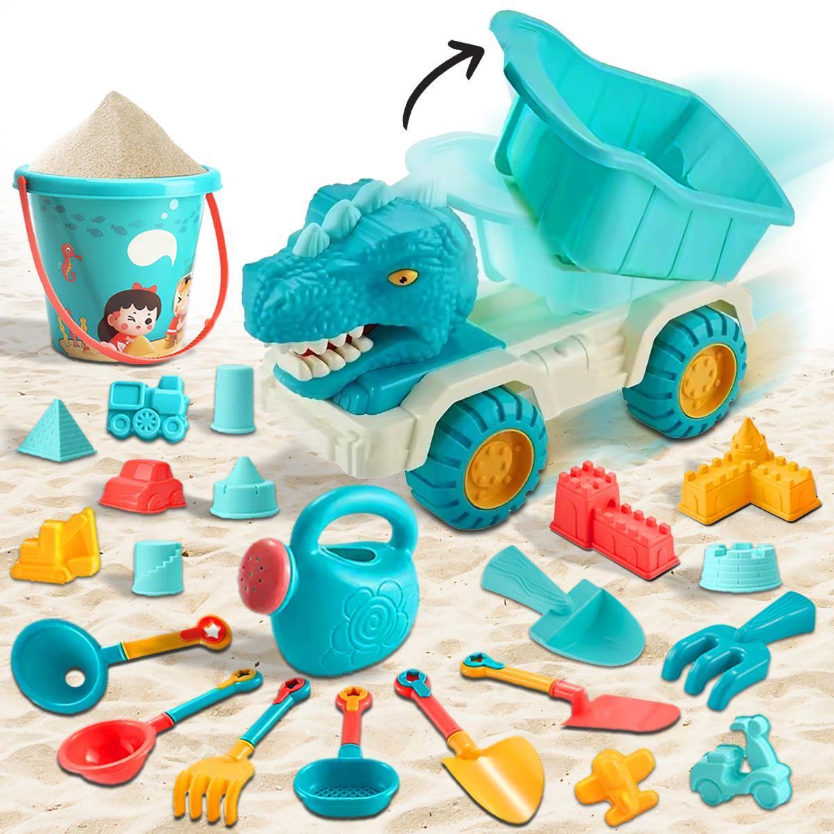 23PCS Beach Sand Toy Set Dinosaur Truck Sand Molds Shovels Buckets Accessories