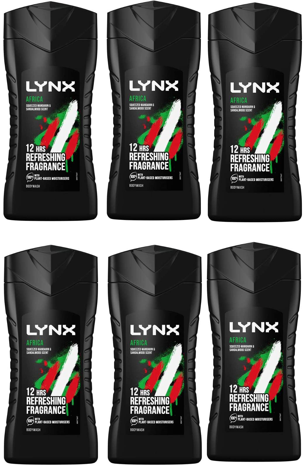 Lynx Africa Shower Gel Body Wash Mandarin & Sandalwood 250ml x 6