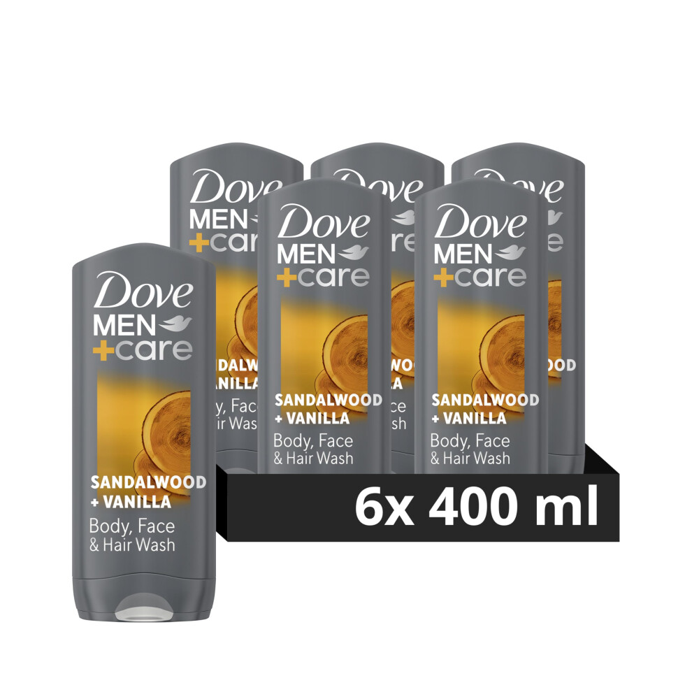 Dove Men+Care Sandalwood & Vanilla Men's Body Cleanser shower gel Body Wash with MicroMoisture technology 3-in-1 Hair, Face and Body Wash for 24 hour nourishment 400 ml, Pack of 6
