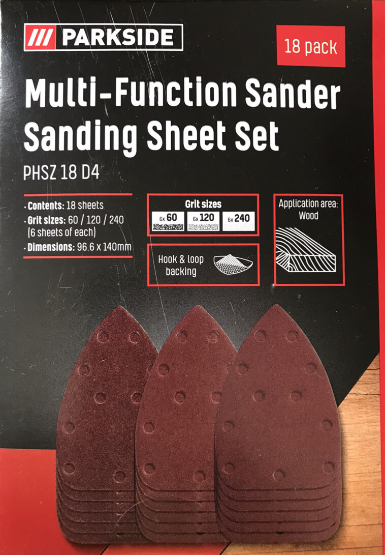 Parkside Multi Function Sander Sanding Sheet Set PHSZ 18 D4 - 18 Pack
