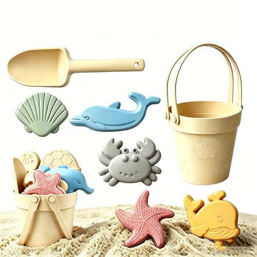 Sand Beach Toys for Kids, Soft Material Sandpit Toys with Bucket and Spade, Summer Beach Games for Toddlers Children (D-8pcs)