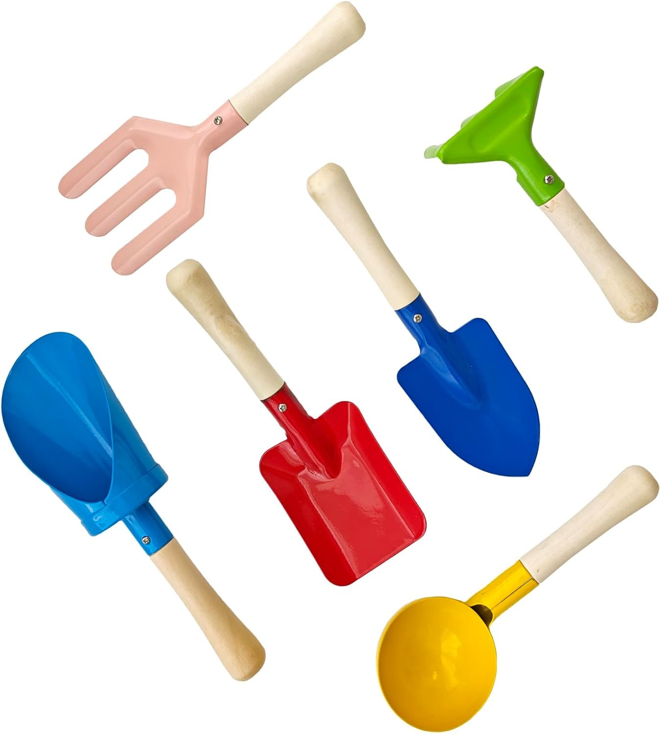 KY-Tech Beach Toys Set for Kids, 6pcs Sand Shovel Kit, Sandpit Toys for Toddlers, Metal Sand Spade, Spoon, Rake, Shovel, Cylinder and Fork for Kids