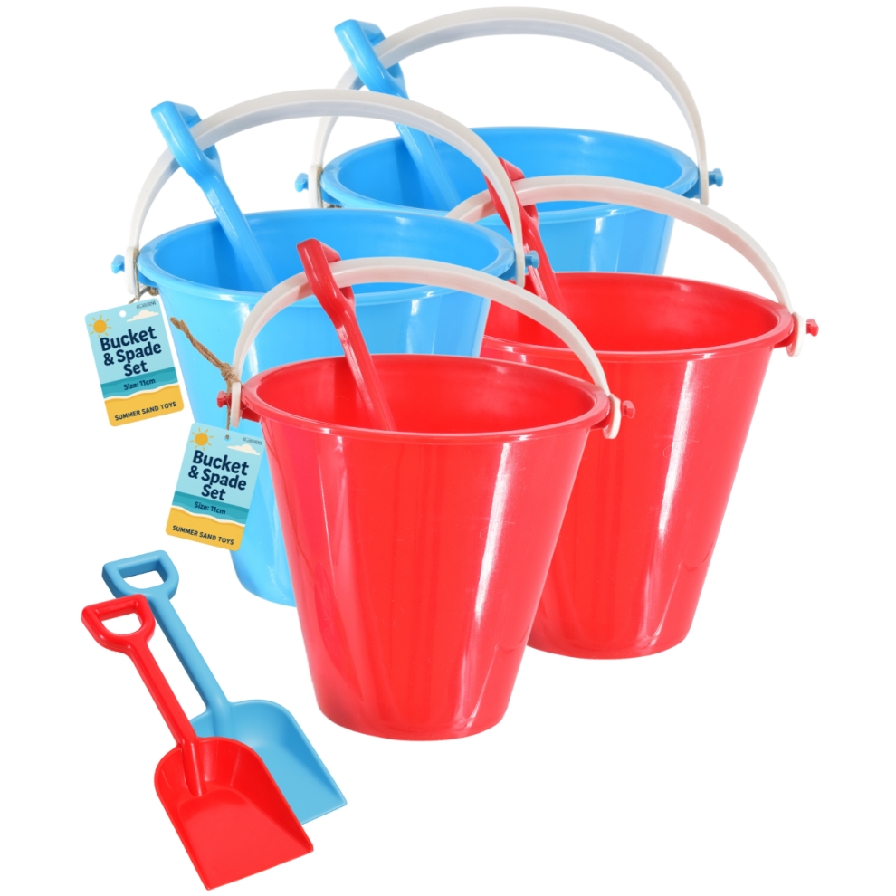 Beach Bucket Spade Set 11cm Summer Sandpit Toys - Assorted - 4 Pack